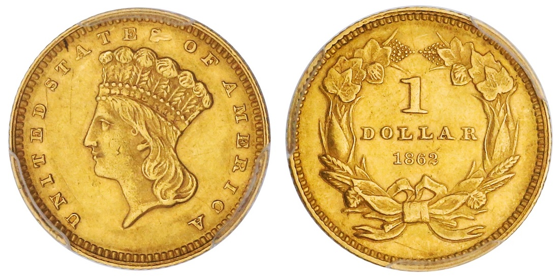1862 $1 Gold. PCGS Genuine. Scratch - AU Detail.