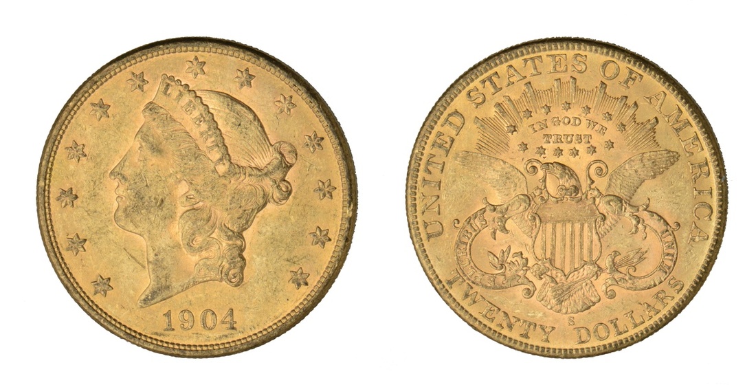 1904-S $20 Liberty. Almost Uncirculated.