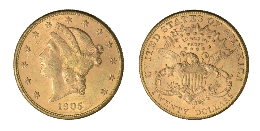 1905-S $20 Liberty. Brilliant Uncirculated.
