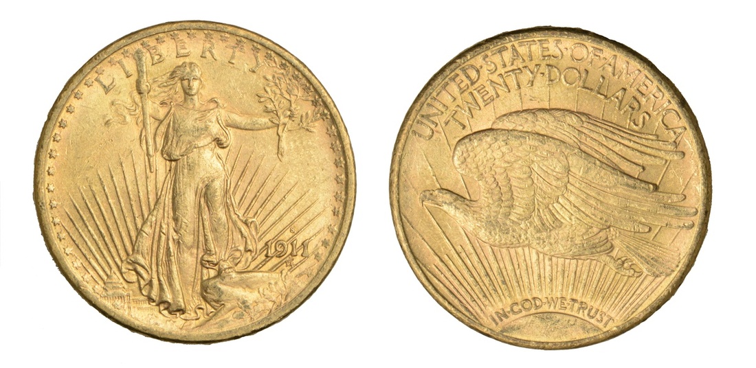 1911-S $20 St. Gaudens. Brilliant Uncirculated.