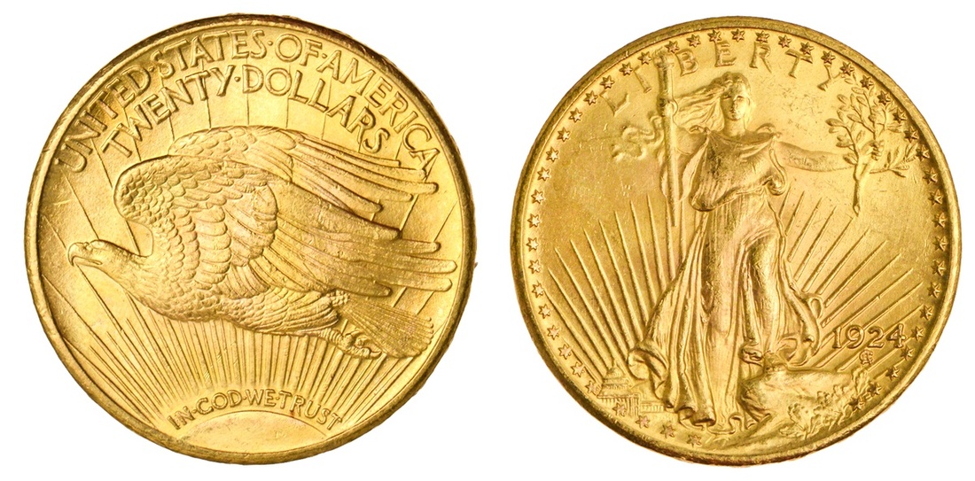 1924 $20 St. Gaudens. NGC 66.