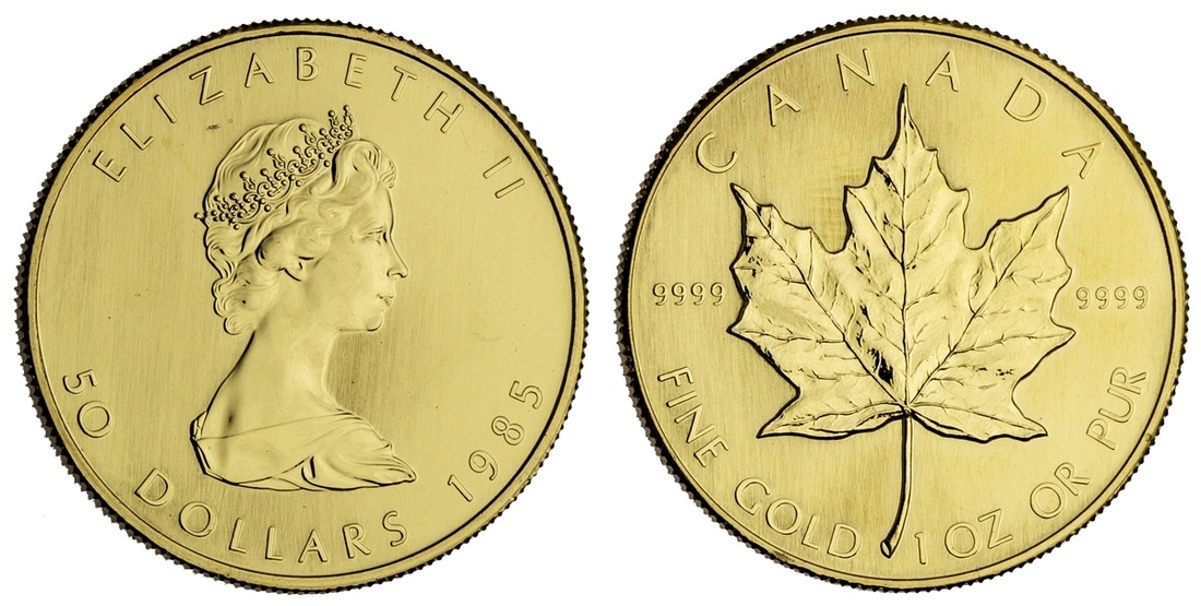 Canada. Elizabeth II. (1952-). Maple Leaf $50, 1985. 1 Oz. .9999 Fine gold. Brilliant Uncirculated.