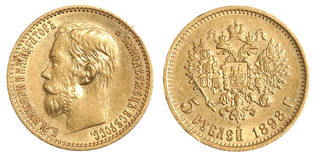 Russia. Nicholas II (1894-1917). 5 Rubles, 1898 AГ. Bare head left, rev. Imperial eagle. Y.62. Extremely Fine.