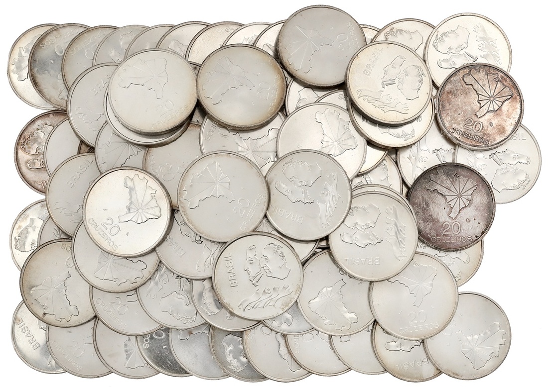Brazil, Group of Ninety KM-583 20 Cruzieros, Brilliant Uncirculated. 150th Year of Independence. .5520 oz. of silver contained.