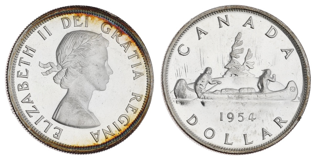 Canada. Elizabeth II (1952-). Dollar, 1954. Voyageur. KM 54. Peripheral russet hues. Gem Prooflike strike.