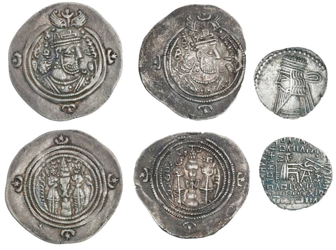 Persian Silver Trio: Parthian. Pakoros I (78-120). AR Drachm; Sassanian. Khusrau II (590-628). AR Drachm (2). VF-EF. (3)
