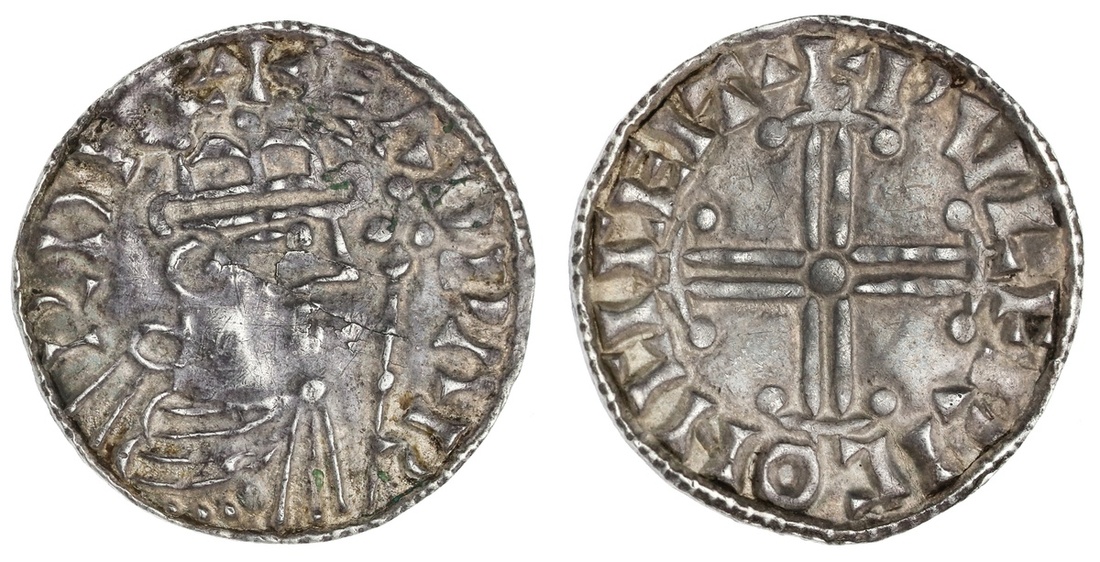 England. Late Anglo-Saxon. Edward the Confessor (1042-1066). Hammer Cross Penny. Chichester, moneyer: Wulfric. 1.34 gms. Crowned bust right, scepter before; +EADWARD REX, rev. Short cross voided, each limb terminating in a "hammer" curve; +PVLFRIC ON CICEIT. N.828, S.1182. Good Very Fine.
