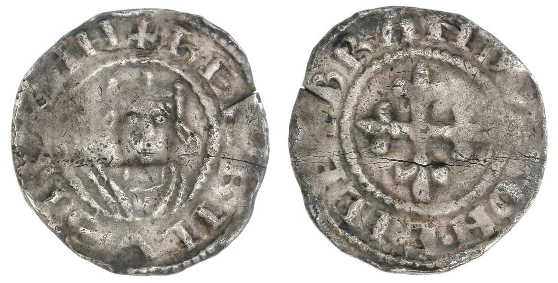 England. Norman Kings. Henry I (1100-1135). Penny. Chichester, moneyer: Brand. 1.26 gms. Crowned and diademed bust facing; +HENRICVS R(EX) AN, rev. Cross fleury with annulet center; +BRANDVS ON.CICE. N.866, S.1271. Central crease, light porosity. Very Fine.