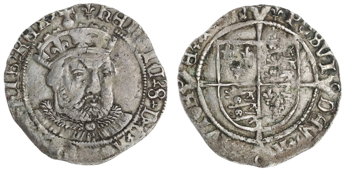 England. House of Tudor. Henry VIII (1509-1547). Third coinage, 1544-1547. Groat, mm lis. Tower mint. 2.44 gms. Crowned bust ¾ right, rev. Shield over cross fourchee. S.2369. Good Very Fine.