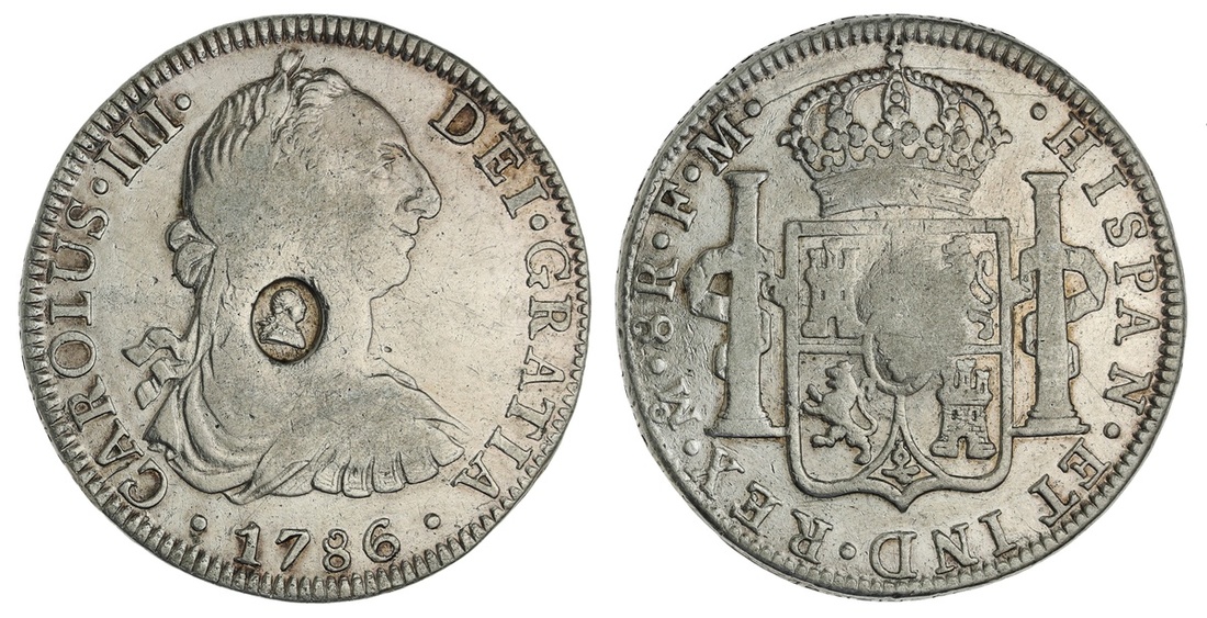 Great Britain. George III (1760-1820). Emergency Issue. Dollar (1797). Oval George III c/m on obverse of a Mexican 8 Reales, 1786 Mo FMS.3765A, KM 632. Very Fine.