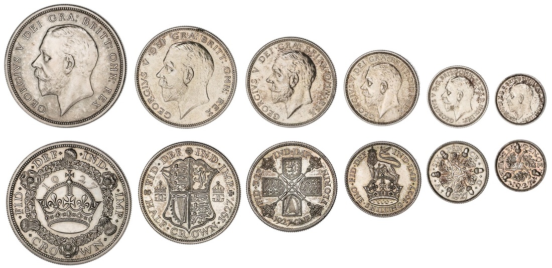 Great Britain. George V (1910-1936). 1927 Proof Set. Threepence to Crown. S. PS14, KM PS20. With original RM case (side panels splitting and scuffed). Toned. Brilliant Proof.