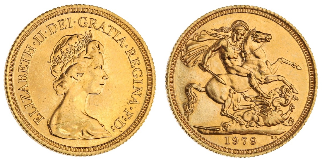 Great Britain. Elizabeth II (1952-). Sovereign, 1979. Crowned bust right by Machin, rev. St. George. S.4204. Choice Brilliant Uncirculated.