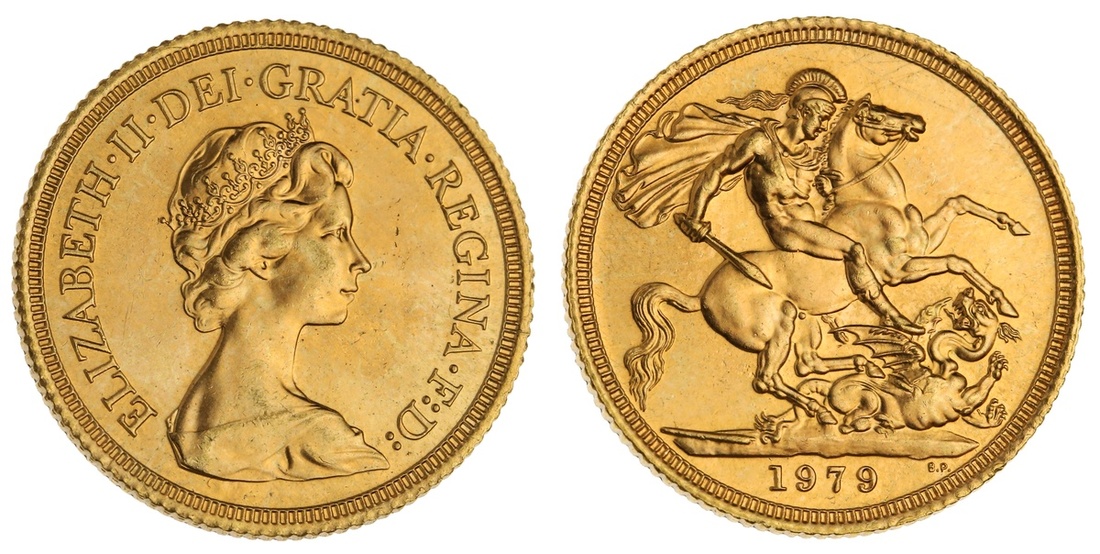 Great Britain. Elizabeth II (1952-). Sovereign, 1979. Crowned bust right by Machin, rev. St. George. S.4204. Choice Brilliant Uncirculated.