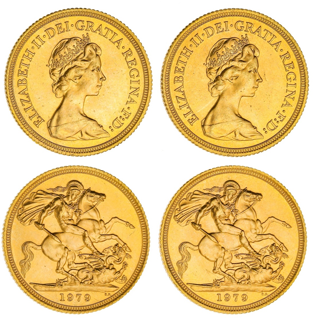 Great Britain. Elizabeth II (1952-). Pair of 1979 Sovereigns. Crowned bust right by Machin, rev. St. George. S.4204. Choice Brilliant Uncirculated. (2)
