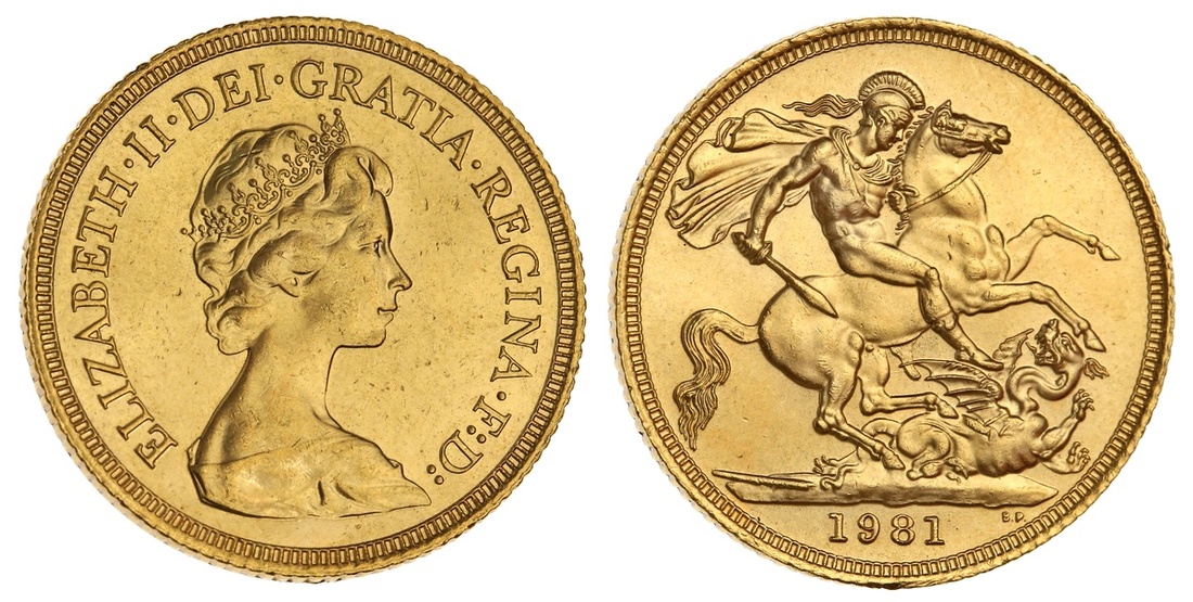 Great Britain. Elizabeth II (1952-). Sovereign, 1981. Crowned bust right by Machin, rev. St. George. S.4204. Brilliant Uncirculated.