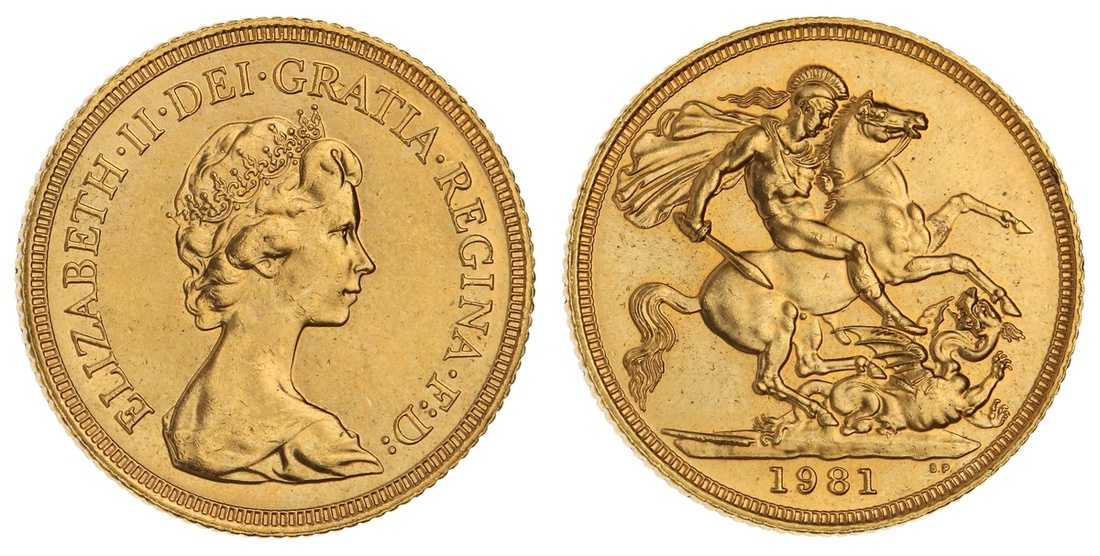 Great Britain. Elizabeth II (1952-). Sovereign, 1981. Crowned bust right by Machin, rev. St. George. S.4204. Brilliant Uncirculated.