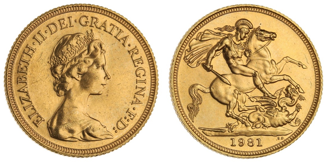 Great Britain. Elizabeth II (1952-). Sovereign, 1981. Crowned bust right by Machin, rev. St. George. S.4204. Brilliant Uncirculated.
