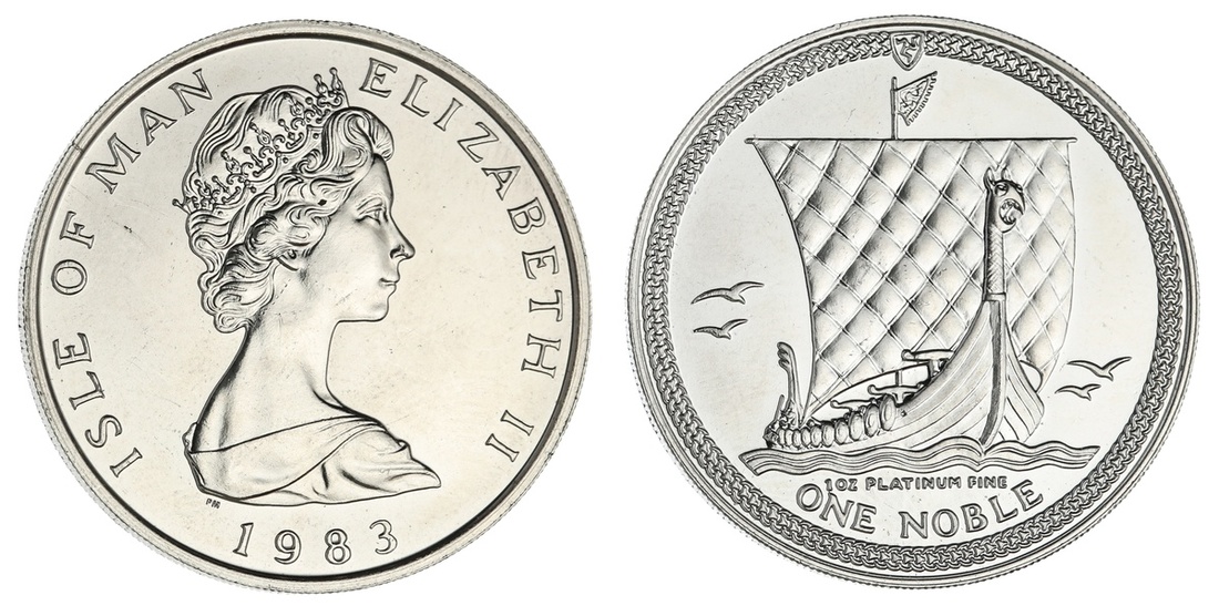 Isle of Man. Elizabeth II (1952-). Platinum Noble, 1983. Crowned bust right, rev. Viking ship. KM 110. Brilliant Uncirculated.