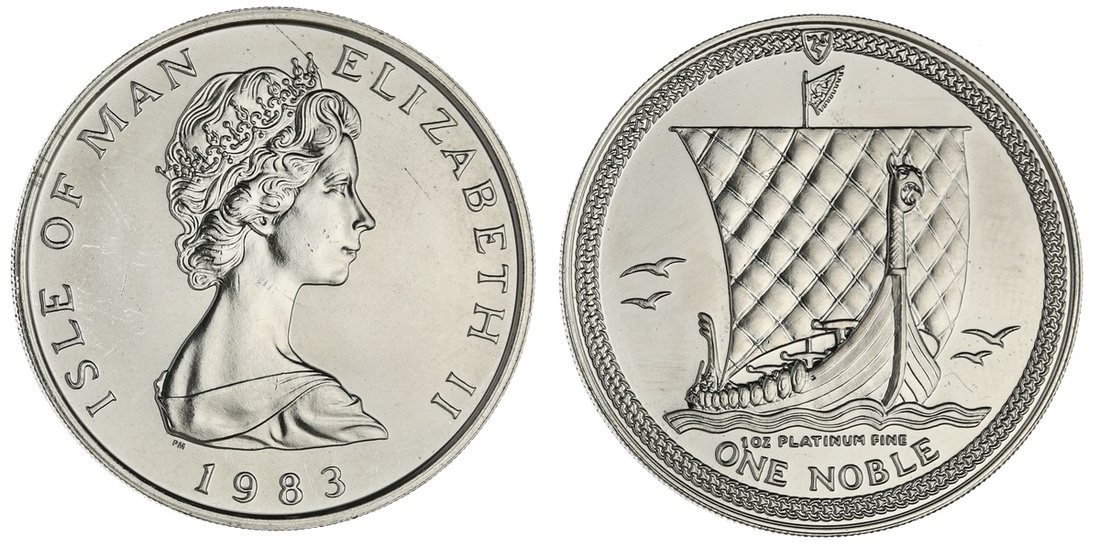 Isle of Man. Elizabeth II (1952-). Platinum Noble, 1983. Crowned bust right, rev. Viking ship. KM 110. Brilliant Uncirculated.