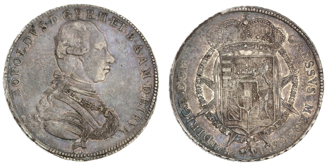 Italian States. Tuscany. Pietro Leopoldo (1765-1790). Francescone, 1790. Cuirassed bust right wearing Order, rev. Crowned Arms in Order chain. C.24.5. Toned. About EF/EF.