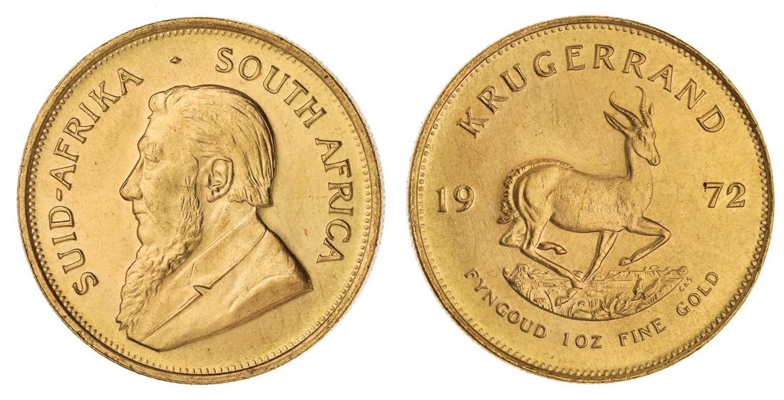 South Africa. Republic. Krugerrand, 1972. Bust of Oom Paul - Paul Kruger left, rev. Springbok. KM 73. Brilliant Uncirculated.