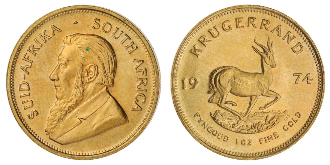 South Africa. Republic. Krugerrand, 1974. Bust of Oom Paul - Paul Kruger left, rev. Springbok. KM 73. Choice Brilliant Uncirculated.