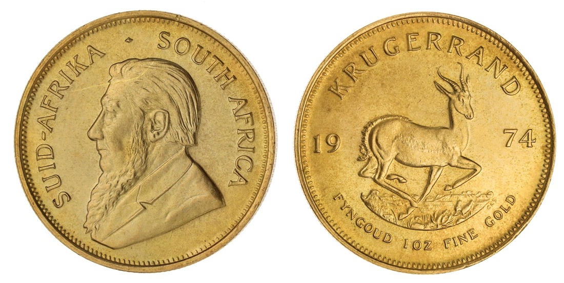 South Africa. Republic. Krugerrand, 1974. Bust of Oom Paul - Paul Kruger left, rev. Springbok. KM 73. Brilliant Uncirculated.