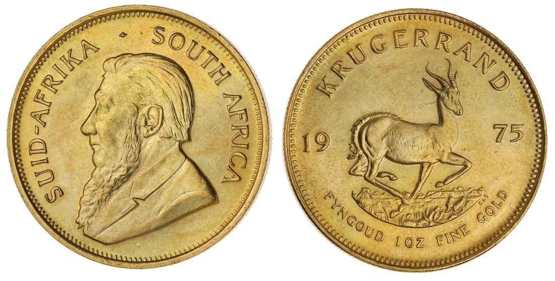 South Africa. Republic. Krugerrand, 1975. Bust of Oom Paul - Paul Kruger left, rev. Springbok. KM 73. Brilliant Uncirculated.