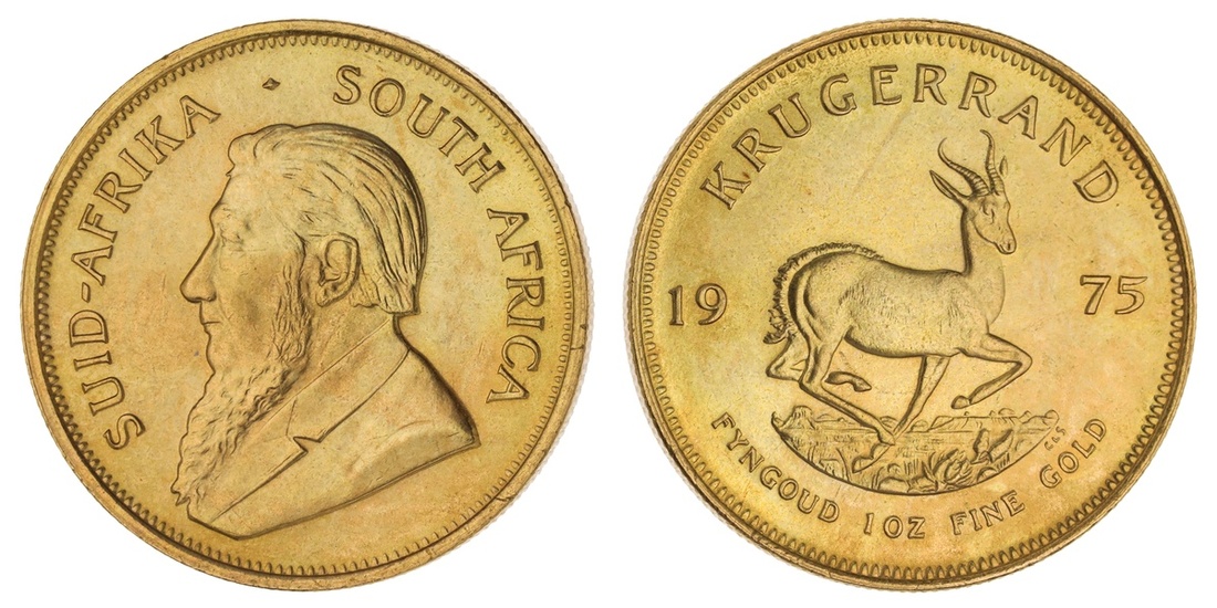 South Africa. Republic. Krugerrand, 1975. Bust of Oom Paul - Paul Kruger left, rev. Springbok. KM 73. Brilliant Uncirculated.