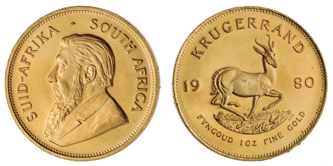 South Africa. Republic. Krugerrand, 1980. Bust of Oom Paul - Paul Kruger left, rev. Springbok. KM 73. Choice Brilliant Uncirculated.