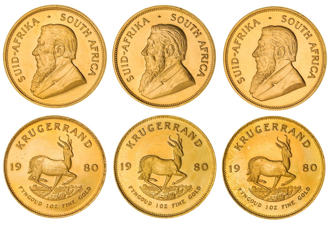 South Africa. Republic. A second Trio of 1980 Krugerrands. Bust of Oom Paul - Paul Kruger left, rev. Springbok. KM 73. Choice Brilliant Uncirculated. (3)