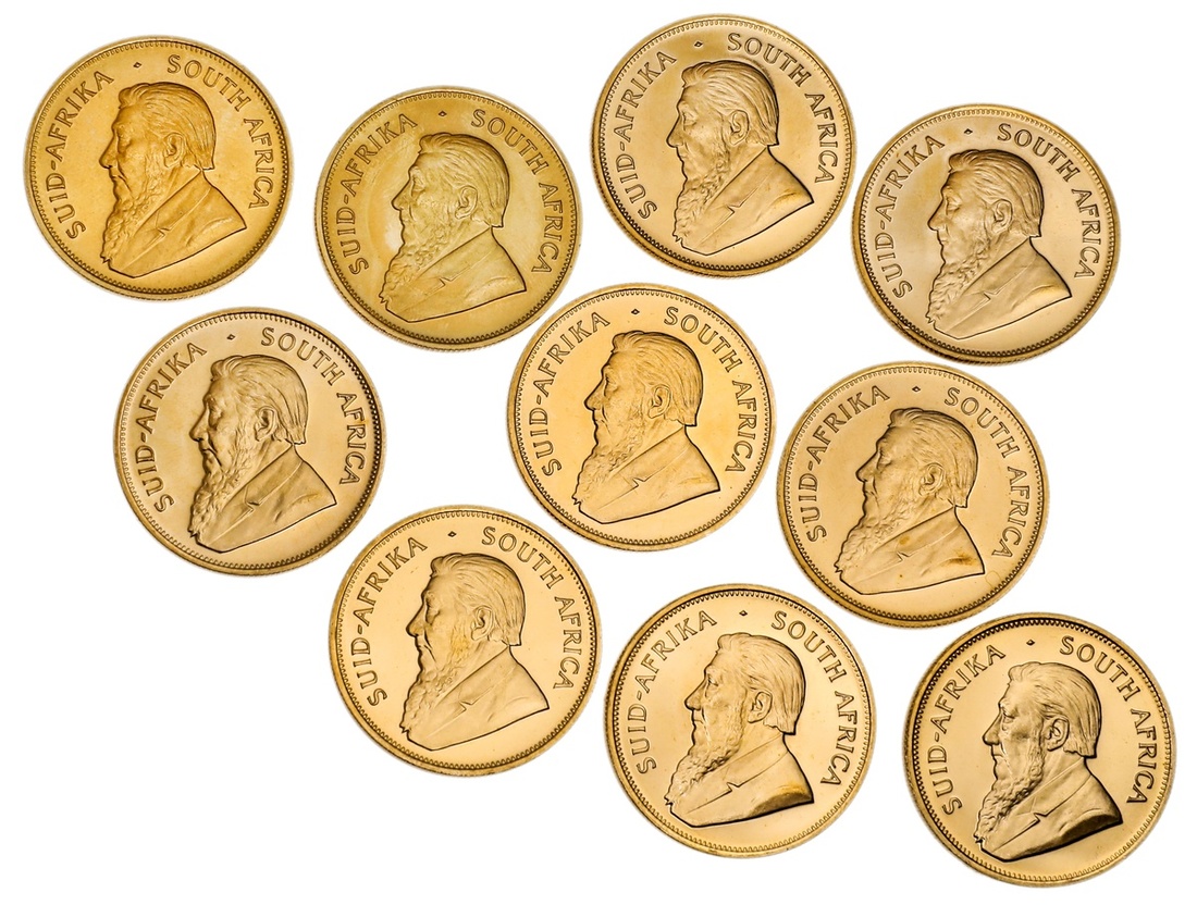 South Africa. Republic. A fourth Roll of ten 1980 Krugerrands. Bust of Oom Paul - Paul Kruger left, rev. Springbok. KM 73. Choice Brilliant Uncirculated. (10)