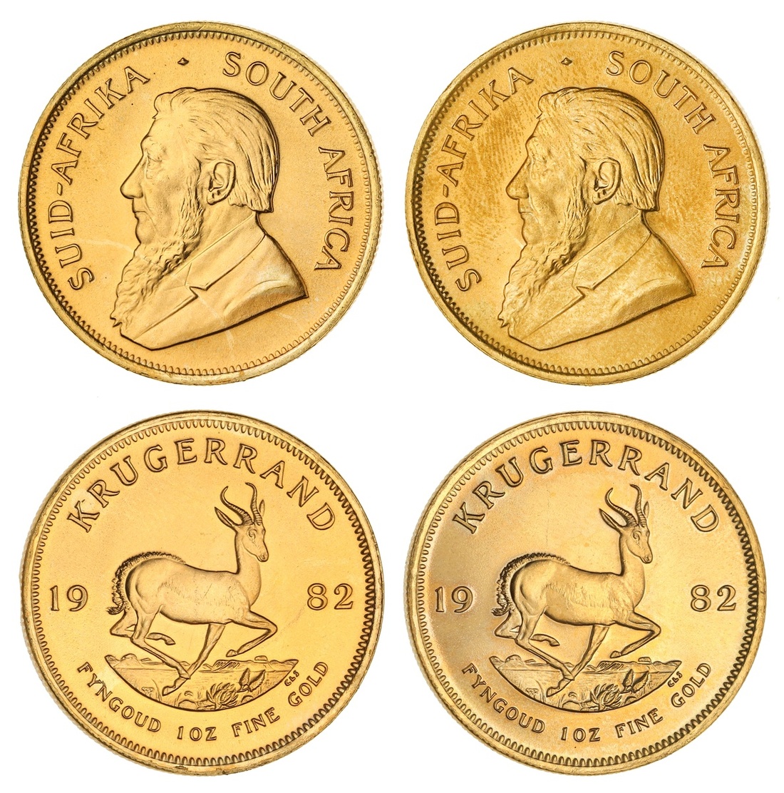 South Africa. Republic. A fourth Pair of 1982 Krugerrands. Bust of Oom Paul - Paul Kruger left, rev. Springbok. KM 73. Choice Brilliant Uncirculated. (2)