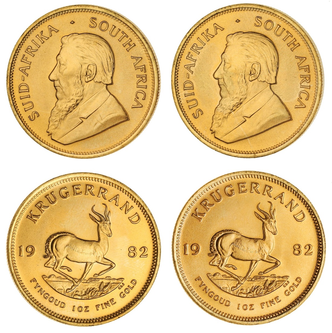 South Africa. Republic. A fifth Pair of 1982 Krugerrands. Bust of Oom Paul - Paul Kruger left, rev. Springbok. KM 73. Choice Brilliant Uncirculated. (2)