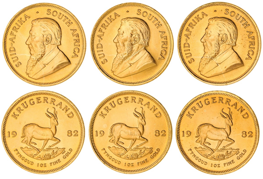 South Africa. Republic. A sixth Trio of 1982 Krugerrands. Bust of Oom Paul - Paul Kruger left, rev. Springbok. KM 73. Choice Brilliant Uncirculated. (3)
