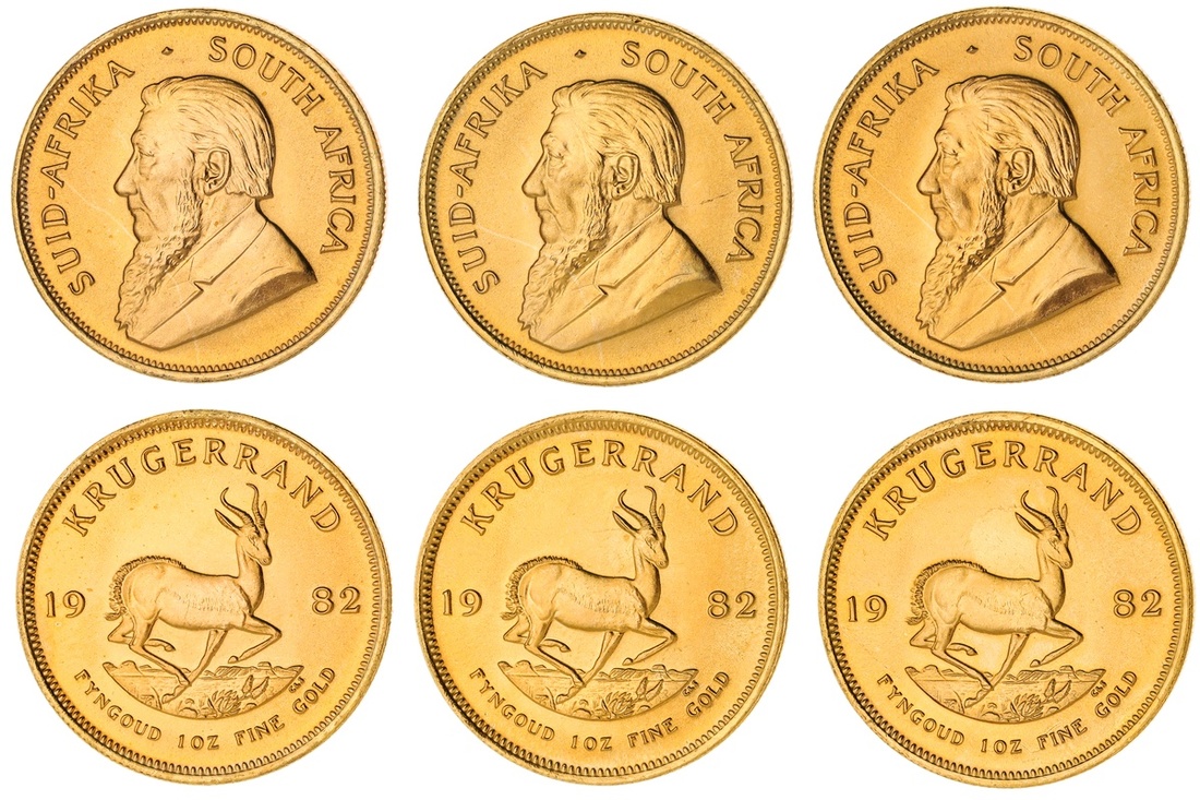 South Africa. Republic. A seventh Trio of 1982 Krugerrands. Bust of Oom Paul - Paul Kruger left, rev. Springbok. KM 73. Choice Brilliant Uncirculated. (3)