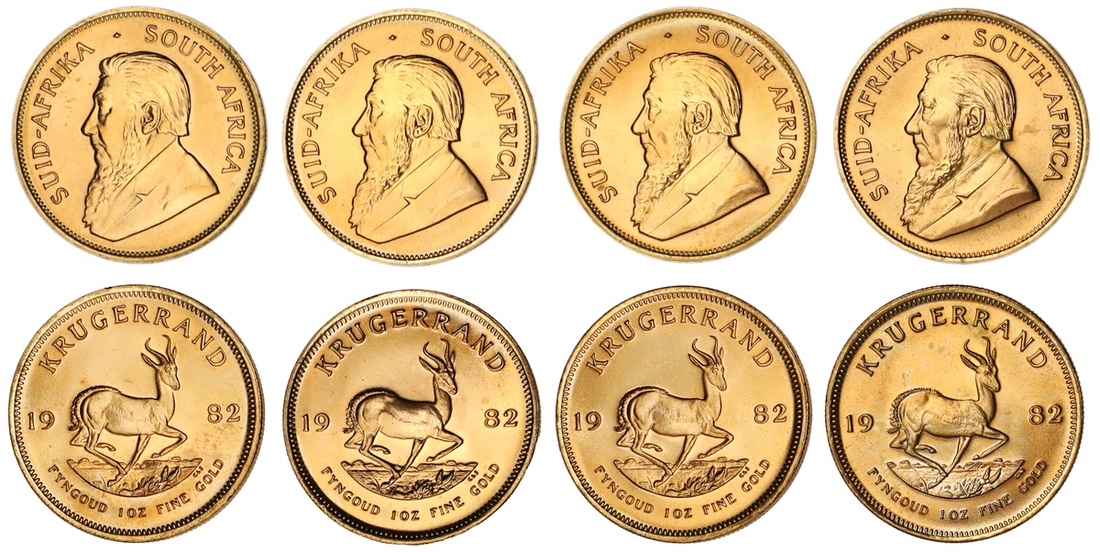 South Africa. Republic. Quartet of 1982 Krugerrands. Bust of Oom Paul - Paul Kruger left, rev. Springbok. KM 73. Choice Brilliant Uncirculated. (4)