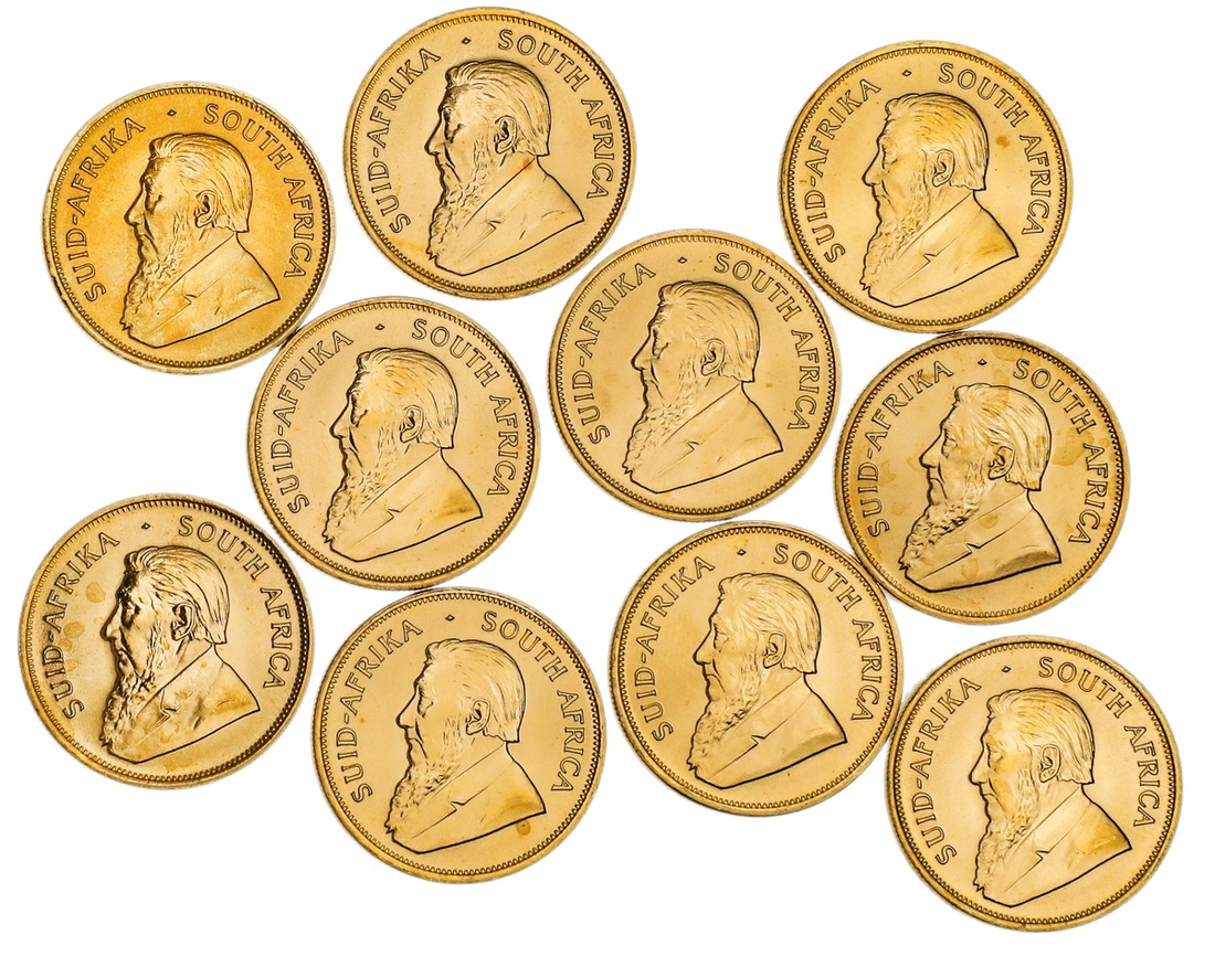 South Africa. Republic. A fifth roll of ten 1982 Krugerrands. Bust of Oom Paul - Paul Kruger left, rev. Springbok. KM 73. Choice Brilliant Uncirculated. (10)