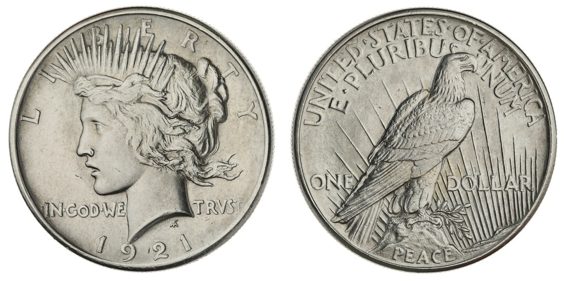 1921 Peace Dollar. Trace of PVC. Uncirculated.