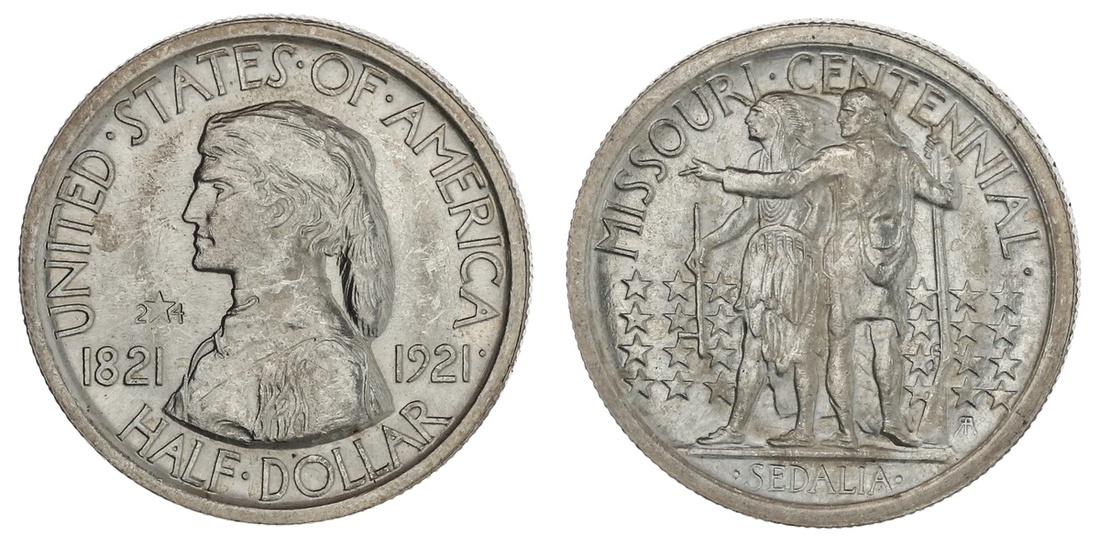 1921 Missouri 2x4 Half Dollar. Brilliant Uncirculated.