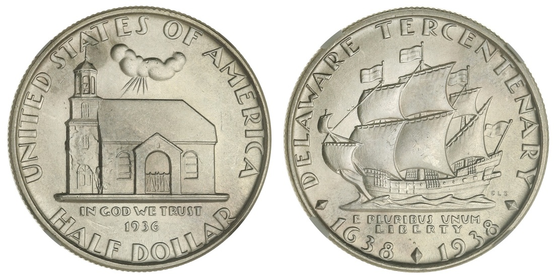 1936 Delaware Half Dollar. NGC MS 65.