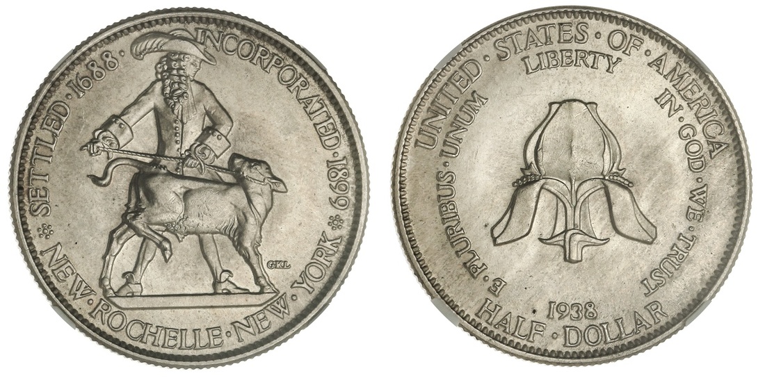 1938 New Rochelle Half Dollar. NGC MS 65.