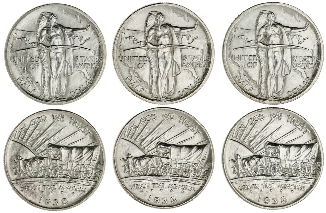 1938 P-D-S Oregon Trail Half Dollar Set. BU. One with trace of PVC. (3)