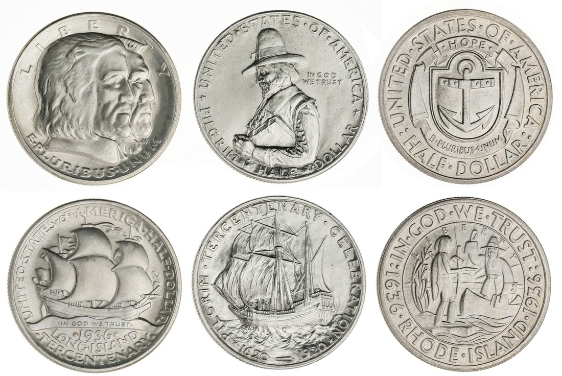 Trio of Commemorative Half Dollars -- 1920 Pilgrim, 1935 Long Island, and Rhode Island. BU. (3)