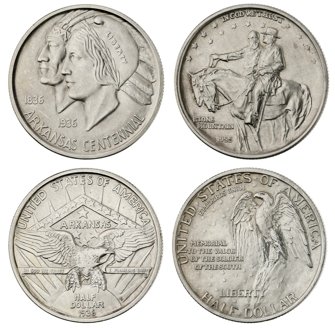 Pair of Commemorative Half Dollars -- 1925 Stone Mountain, and 1936-D Arkansas. Light PVC residue. BU (2)