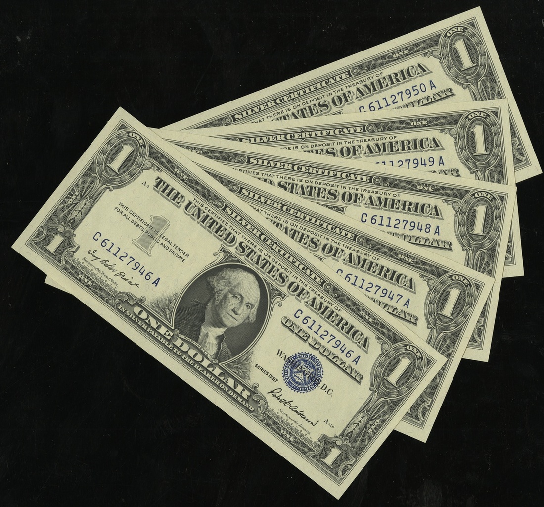 Fr.1619. $1. Silver Certificate. 5 Consecutively numbered - C 61127946 A to C 61127950 A. Crisp Uncirculated. [5]