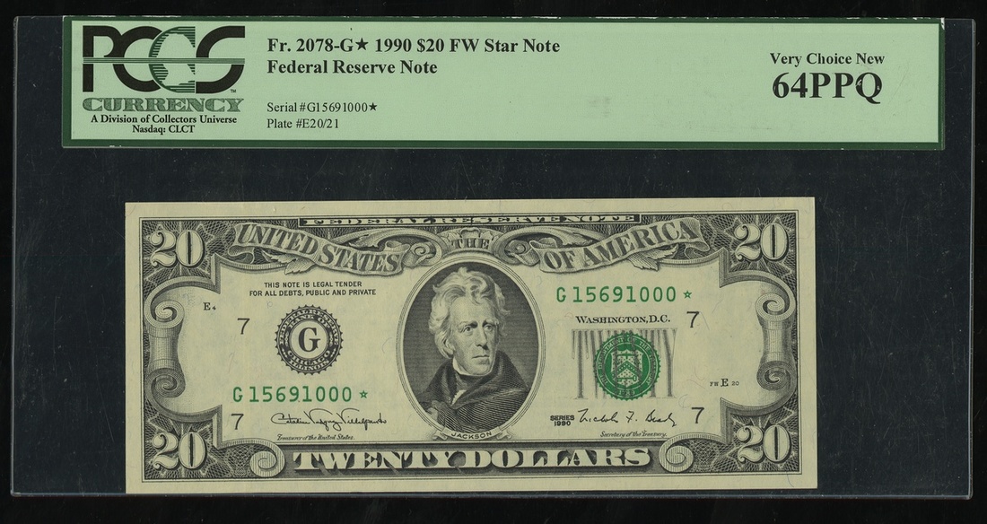 Fr.2078-G*. $20 STAR Federal Reserve Note. Chicago 1990. PCGS Very Choice New 64 PPQ.