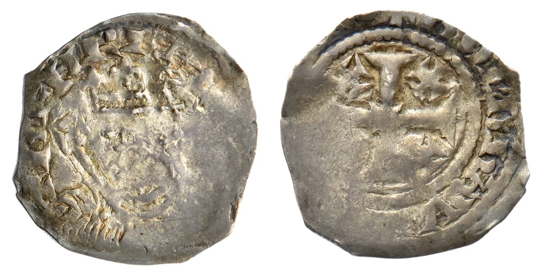 England. Plantagenets. Henry II (1154-1189). Cross-and-Crosslets ("Tealby") Coinage. Penny. Canterbury, moneyer: Goldhavoc. 1.4 gms. Bust C. Crowned head facing slight left, with scepter; +HENRI---, rev. Cross and crosslets; +GOLDHAV(OC)---. N.957, S.1339. Typical flat areas. Toned. Fine.