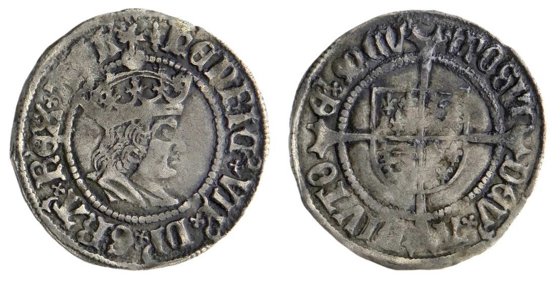 England. House of Tudor. Henry VII (1485-1509). Profile Issue. Halfgroat, mm. lis (1502-4). 1.4 gms. Crowned bust right, rev. Shield over cross fourchee. S.2259. Toned. Decent strike. Very Fine.