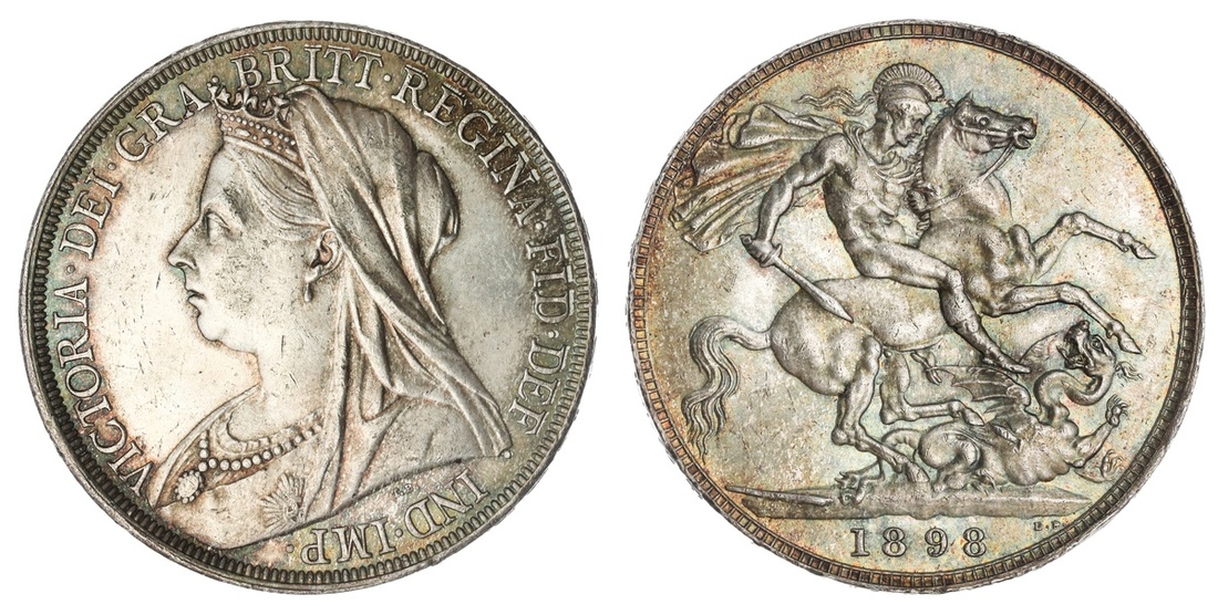 Great Britain. Victoria (1837-1901). Crown, 1898. LXI. Crowned, older veiled bust left, rev. St. George. S.3937, KM 783. Lightly toned. Brilliant Uncirculated.